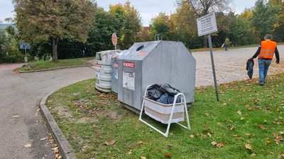 Leider lag rund um die Container dort wieder sehr viel, vor allem auch größere Teile/Sperrmüll und Scherben.